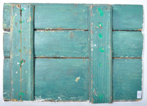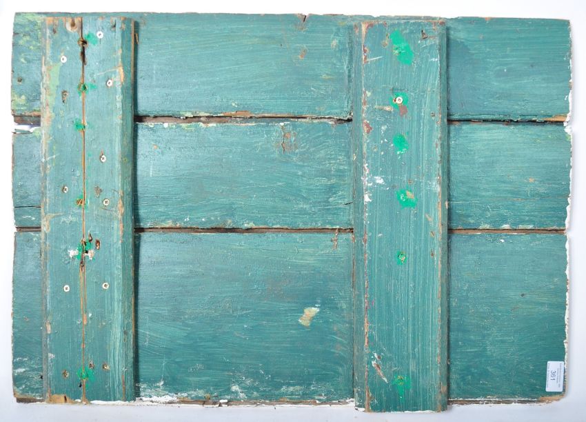 A contemporary vintage style shabby chic Union Jack painted on three vintage paneled rustic boards united and reinforced by two backboards. Measures 70cm x 48cm.