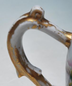 A 19th century Chinese famille rose Qianlong era teapot having fine handprinted scenes of rural life and gilt decoration to the branch handles and spout.