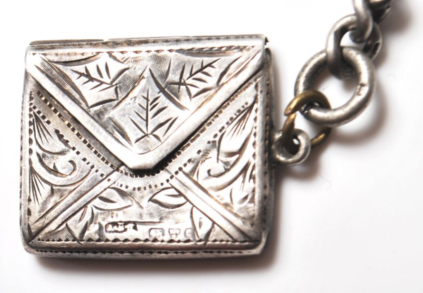 A hallmarked sterling silver open faced pocket watch by J G Graves of Sheffield. The pocket watch with inset subsidiary seconds dial, blue hands, black Roman numerals, white enamel dial, all within case. Set to a hallmarked silver graduated Albert chain with stamp holder. bearing hallmarks for Sheffield, 1922, Makers mark illegible.
