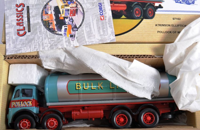 A collection of x10 Corgi Classics made boxed diecast vehicle models from the Road Transport range. Includes model numbers 97970 Foden Tanker Regent, 97920 Highwayman R.Edwards, 97301 Bedford Articulated and others. All models appear mint and likely unused within their original boxes. Great collection.