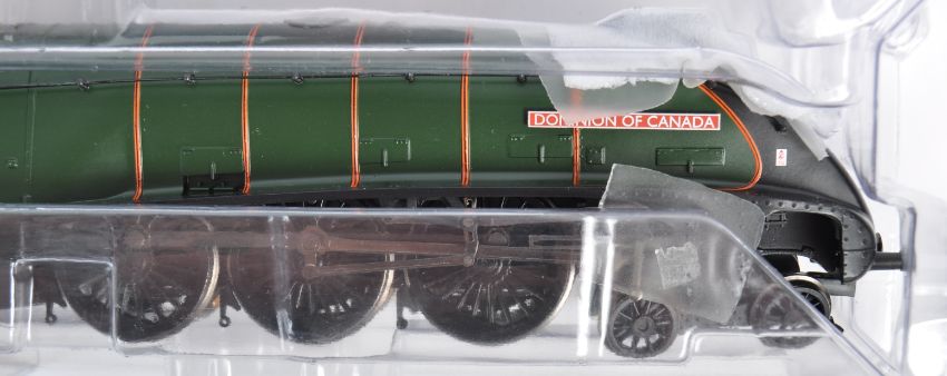 A Bachmann made Branch Line 00 gauge model railway trainset locomotive No. 31-967 Class A4 ' Dominion Of Canada  No 60010'. British Railways green Late Crest with tender. DCC ready. Contents appear mint, possibly unused. Housed within its original box, with paperwork. Superbly detailed.