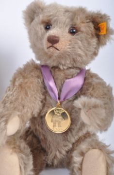 A collection of x4 original German Steiff made ' Danbury Mint 'edition soft toy teddy bears. The bears all having the gold button tag to the left ear. Mohair bodies with fully jointed limbs and felt padded paws. Each having their medallion / medal to their necks stamped ' Danbury Mint ' with dates 2001, 2004, 2006 and 2009. The 2004, 2006 and 2009 bears come with certificates of authenticity.  Measures approx 25cm