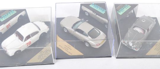 A collection of x7 assorted 1/43 precision scale model diecast cars by makers Vitesse, Nex and Maxi Car. Models to include;- Vitesse Jaguar XK8- Vitesse Jaguar MKII- Vitesse Jaguar XK8 open cabriolet- Vitesse Jaguar Daimler V8 Saloon in Warwick Grey- Vitesse Jaguar Daimler V8 Saloon in Primrose- Nex Volkswagen Beetle- Maxi Car BMW RoadsterGood collection of highly detailed models within original display boxes.