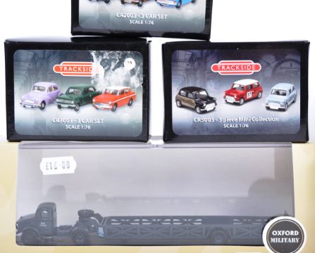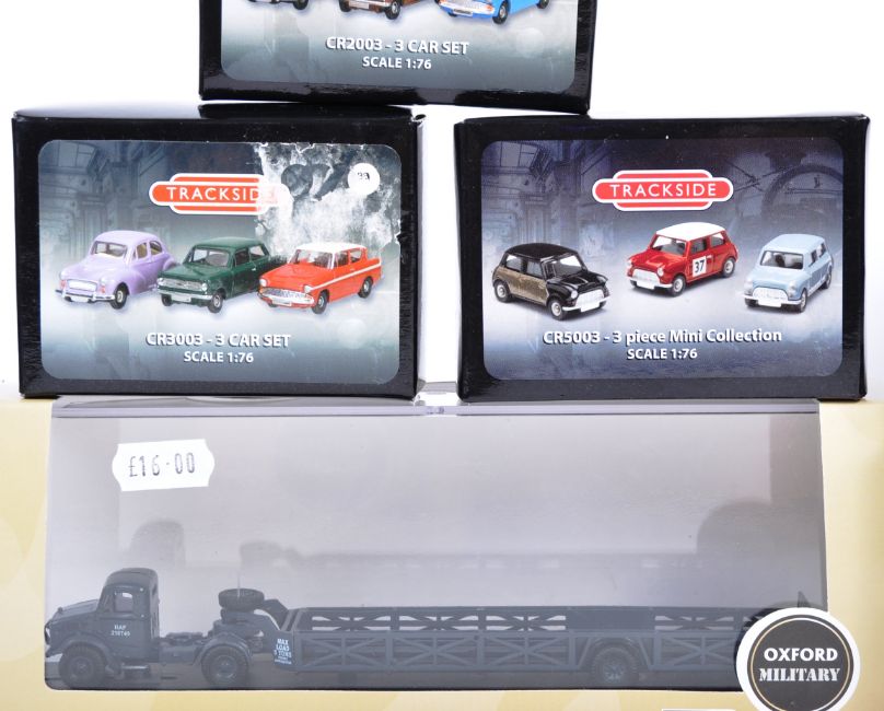 A large collection of 1/76 scale 00 gauge boxed diecast of makers to include Corgi Trackside, Oxford Diecast and Gilbow. An assortment of classic cars, cranes trailers and steam related vehicles. Highly detailed models.