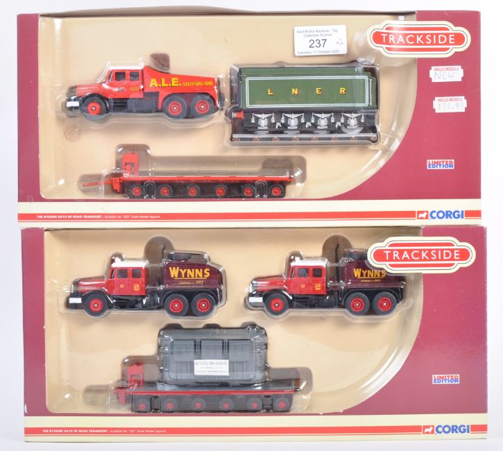 Two Corgi made Trackside ' Limited Edition ' 1/76 scale boxed diecast model sets - DG198008 Scammell Contractor, and DG198003 Scammell Contractor x2. Both contents appearing mint and unused. Boxed.