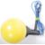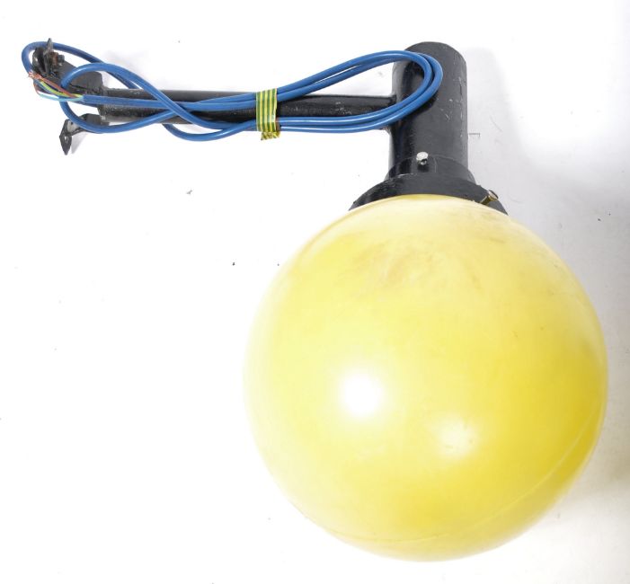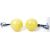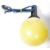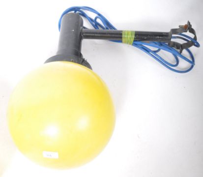 A large pair of contemporary zebra crossing lamp lights having a large yellow ball acrylic shades on black metal brackets. Each measures 48cm x 46cm.