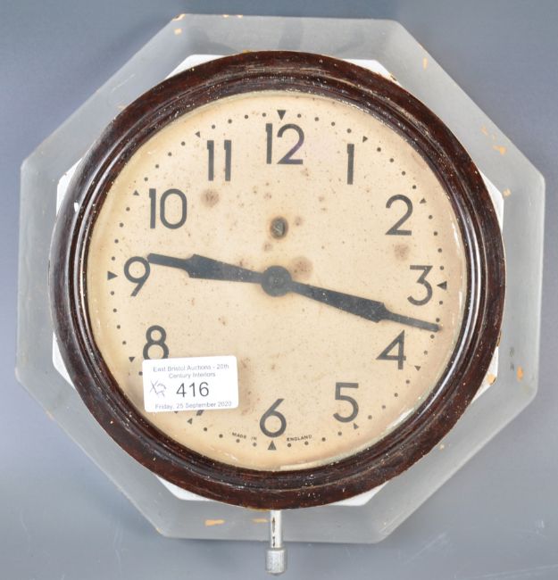 Smiths - Sectric SEC - Two early 20th Century Art Deco retro vintage bakelite clocks comprising a wall example of octagonal form and a mantel clock example. Measures: 23cm.