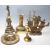 A collection of vintage 20th century brass items to include a heavy brass candlesticks in a shape of french solder mounted a circular plinth base, two door stops, a brass candlestick converted in a lamp base and a zodiac ashtray. Measures 38cm tall.