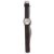 A gentleman's Seiko 5 Automatic 21 jewels stainless steel wrist watch having a silvered sunburst dial with gilt baton markings to the chapter ring and date and time aperture to three. The date aperture having the months in Arabic and date in numbers.On a leather strap with red stitching. 7S26 calibre movement.
