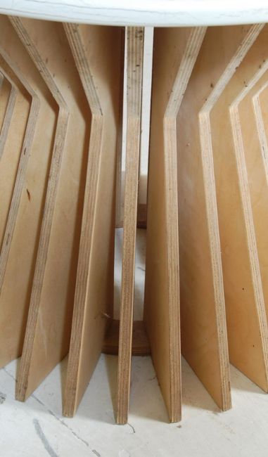 A retro vintage Danish inspired 1970s " Jellyfish " coffee table having a white circular top raised on distinctive angular beech supports. Measures 48cm x 60cm.