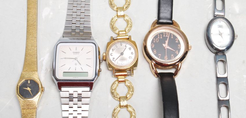 A collection of watches to include gents mid century Bifora Top, Tissot, Casio & Sekonda. Also, large amount of ladies watches to include a 9ct gold cased Avia dress watch,  Dugena, Timex, Tissot, Rotary, Infinite, Ingersoll, Pulsar, Sekonda, Time, Carvel, Timex black face, Sekonda, Unifesta Anker, Black face Smiths Empire, Rotary with gilt bark effect bracelet strap