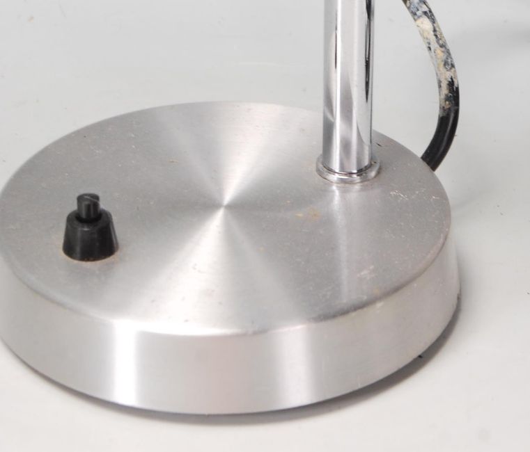 SA collection of three vintage 20th century desk lamps / light. Two goose neck desk lights, one finish in red paint and other with brush aluminium body along with a Ikea lamp with adjustable body.Measures, 43 cm Tall