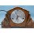 A 1930's Art Deco walnut inlaid mantel clock. Of shaped sunburst form having a central silvered dial with arabic numbers and faceted hands. Brass 8 day movement set within.