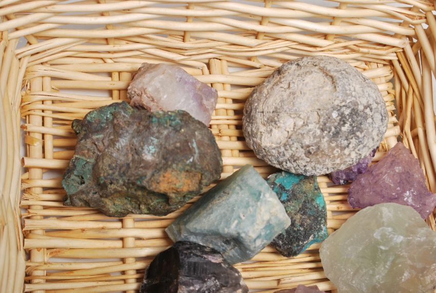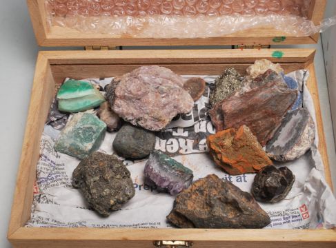 A good collection of vintage 20th century mineral crystals of various sizes and colours to include Amethyst, Fluorite, Geodes type crystals, Quartz, Green Moss Agate Natural Raw Rough Chunks, etc.