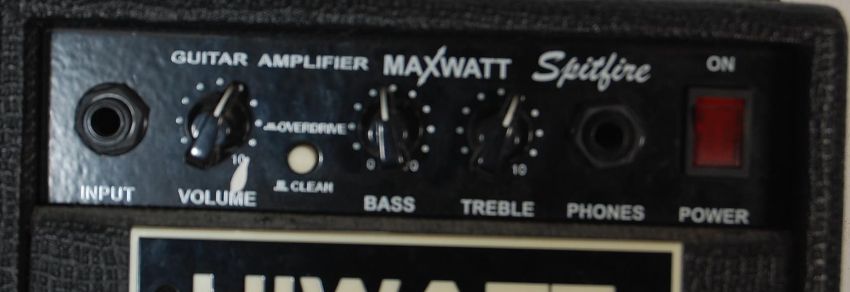 A six string electric guitar by Tanglewood Nevada model no. FST32K. The guitar of Stratocaster form is finished in cherry red having white scratchboard with mother of pearl fret markers and chrome tuning pegs. Comes together with soft case and a Hiwatt Spitfire guitar ampMeasures, 95 cm H x 35 cm W