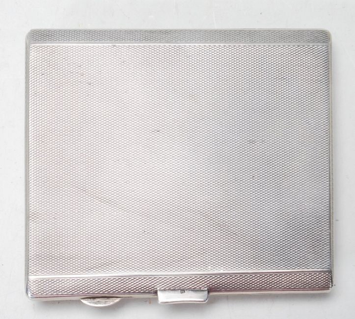 An Art Deco 1930's Frederick Field silver hallmarked cigarette case with engine turned decoration with an oval enamelled picture panel to the front with a female figure within. Hallmarked Birmingham 1932. Weight 165g. Measures 9.5cm .