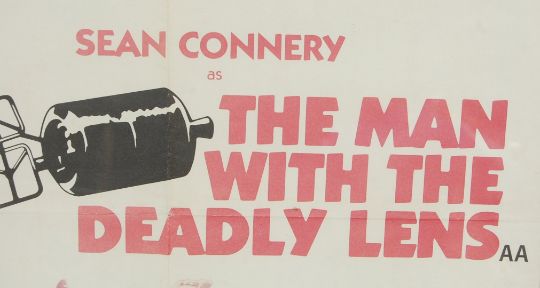 Sean Connery - The Man With The Deadly Lens. A vintage 20th century large cinema poster of the famous 1980’s film by Columbia pictures having Sean Connery as a lead actor. Framed and glazed.Measures, 80 cm H x 106 W cm