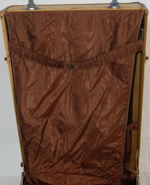 A collection of three early 20th century vintage steamer trunks / cases comprising of a wooden framed trunk together with two other suitcases both opening to reveal a fully appointed interior.