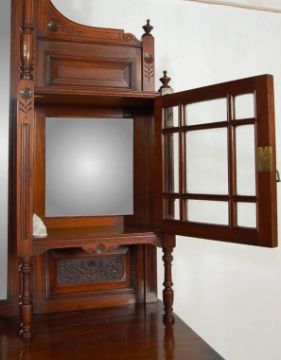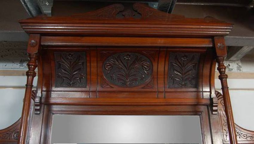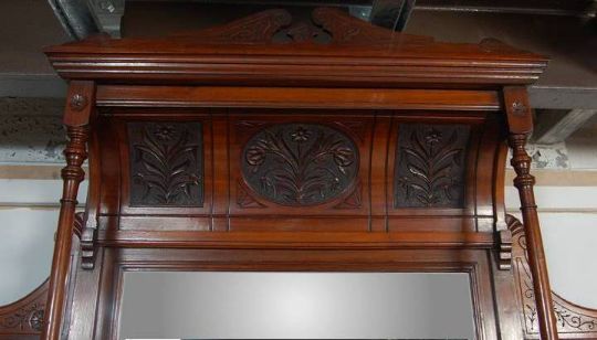 A large late Victorian 19th century dome top mirror backed sideboard. Raised on turned stub legs with a dresser base comprising of end cupboards and short drawers with central open dog kennel. Above, a stunning large mirror back gallery upright with central quarter moon arch above mirrors and column supports.Measures 255 H x 182 W x 56 D
