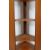 A retro vintage 1960s Danish inspired teak wood corner unit having a three tier shelving unit set on an angular base.