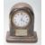A silver hallmarked miniature mantel clock with white porcelain dial having plain notation plaque to the front. Silver hallmarks dated r illegible makers mark and location. Total gross weight: 280g measures: 10cm tall.