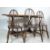 A 1920's oak refectory dining table being raised on carved supports united by stretchers and splayed feet. Above, a rectangular oak table top. Together with a good set of beech and elm wood tall hoop back dining chairs with turned legs united by bobbin stretchers. Measures 75 H x 153 W x 73 D