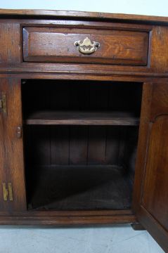 A good quality  Titchmarsh & Goodwin handmade oak sideboard dresser. Raised on stile legs with a series of short drawers over cupboards beneath. All with recessed fielded panels and pull handles. The flared oak sideboard top above short drawers, all with brass handles.Measures 84 H x 169 W x 54 D