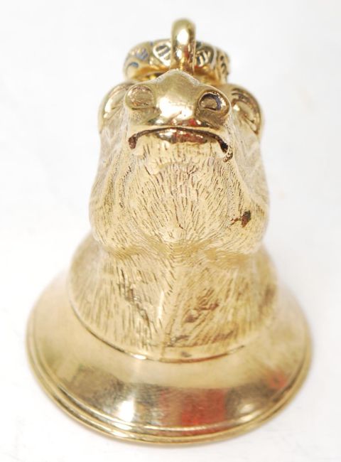A gilt document seal having a handle in the form of a horse with pendant bale to the top with a seal crest to the base. Measures, 4 mc Tall.