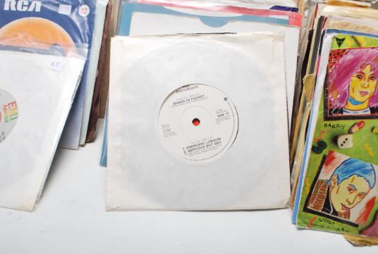 A good mixed collection of 450+ 45 7" singles of varying artists and genres to include The Who The Good's Gone (05968), Soft Cell Say Hello Wave Goodbye P/S (BZS 7), ZZ Top My Head's In Mississippi P/D (W0009P), Blondie P/S Denis (CHS 3328), Motorhead Leaving Here (BRO 92), Mary Hopkins Goodbye (APPLE 10), Meat Loaf Razor's Edge P/S (A4080), Isaac Hayes Cafe Regio's (ENA-9038), Pink Floyd Another Brick In The Wall Part II (HAR519), The Blow Monkeys This Is Your Life (PB 42695), Robin Scott Pop Muzik (MCA 413), Santana Oye Como Va (CBS 7046), Manfred Mann's Earth Band California (BRO 48), The Stylistics Break Up To Make Up (6105020), Johnny Nash There Are More Questions Than Answers (CBS 8351), Madonna Hanky Panky P/S (W9789), Roy Orbison Goodnight (HL-U9951), Soul II Soul Back To Life P/S (TEN265), Dire Straits Brothers In Arms P/S (DSTR11), Def Leppard Animal P/S (Lep 1), Squeeze Cool For Cats P/S (AMS 7426), Orchestral Manoeuvres In The Dark Enola Gay P/S (DIN 22), Queen & David Bowie Under Pressure (EMI 5250), The Marmalade Ob-La-Di Ob-La-Da (3892), selection of David Bowie and Rolling Stones and many many more.