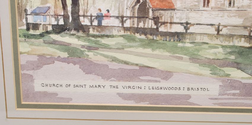 Colin Woodward - A late 20th Century local interest watercolour on paper painting ' Church of St Mary the Virgin ' in Leigh woods Bristol. Framed and glazed. Signed to the lower left corner dated 1998.