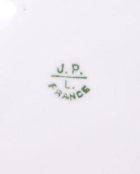 A set of 4 19th century Jean Pouyat Limoges cabinet plates. Each with green and gilt borders surrounding central scenes of game birds to include grouse, peasant, partridge etc. Stamped to verso.