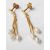 A pair of 18ct gold and pearl drop earrings each having three box chains with pearl drops. Butterflies marked 750. Weight 2.8g. Measures 4.5cm