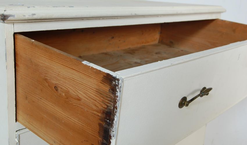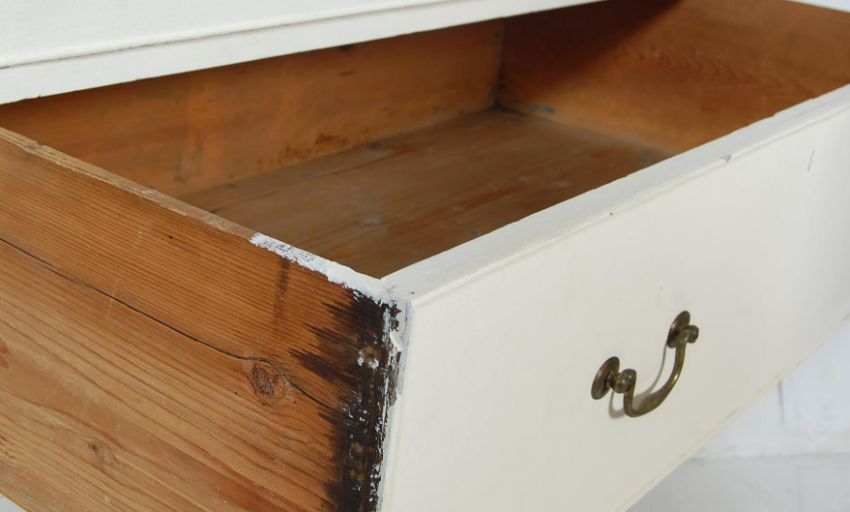 A late 19th century Victorian two over three chest of drawers having brass swing handles raised on bracket feet finished in white colour