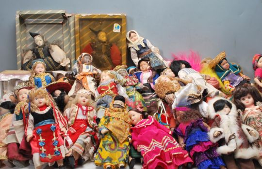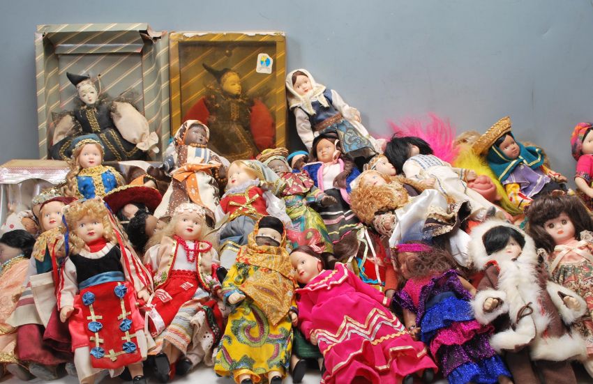 A very large quantity of vintage 20th century dolls and teddy  bears to include around the world dolls with porcelain faces and limbs, stuffed teddy bears, etc.