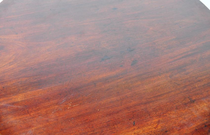 A rare late 18th Century Georgian English antique mahogany single plank tilt top small dining table / side occasional table. The scarce single plank top variant having a circular table top with working lock raised on turned reeded column over tripod base legs. A Great period example. Measures 125cm x 95cm.