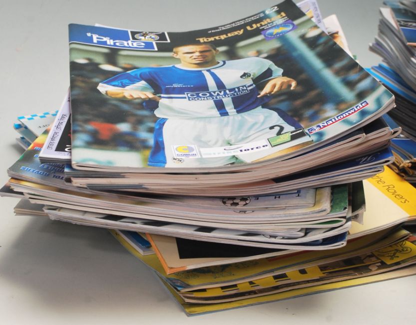 A large collection approximately 120+ of Bristol Rovers programmes - The Pirate, football programmes form 1970’s, 1980’s, 1990’s 2002, 2003, 2004, 2005, 2006, 2007, 2008, escrow include Roy Dolling, The Gashead -The Unofficial Fanzine Of Bristol Rovers Football Club. Black Arab, The Alternative Bristol Rovers Zine, Fulham Football Club, etc.