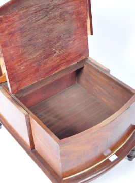 A large and impressive oversized set of flame mahogany library steps of incredible size having a hinged lid top opening to reveal a storage compartment, pull out drawer with another hinged compartment. All raised on turned legs. Measures: 70cm x 52cm x 73cm.