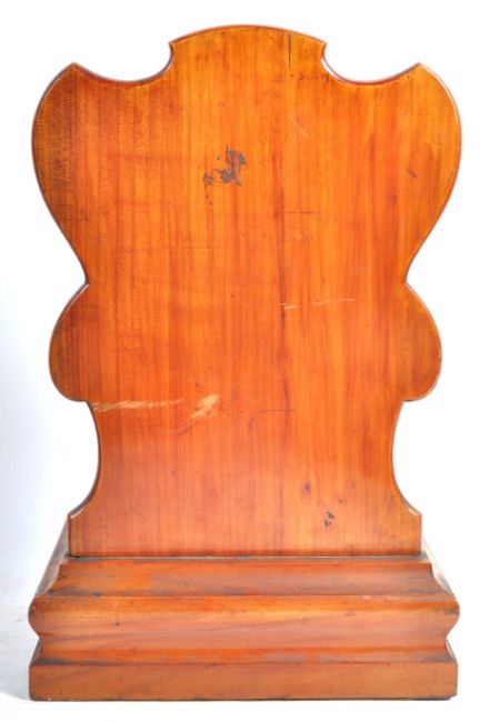 A fine pair of of late 18th / early 19th Century Georgian English antique satinwood plate stands. Each stand having shaped splat back supports with carved rest to the base. Raised on a plinth bases. Measures 39.5cm x 24cm x 16cm.
