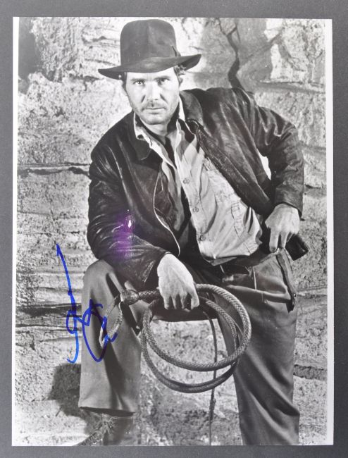 Indiana Jones - Harrison Ford - an incredibly rare original Harrison Ford signed 7x9" black and white publicity photograph from Indiana Jones - Raiders Of The Lost Ark. Signed neatly by Ford in blue ink to a lighter portion of the image. A stunning piece of Indiana Jones memorabilia. Supplied with an ACOA certificate of authenticity. Rare.