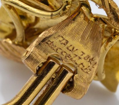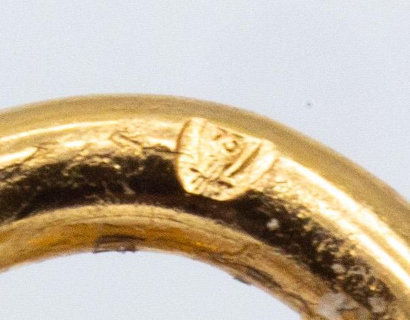 18K. French import assay mark to clips. Measures approx 2 cm. Weight 7.02g.