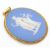 An antique 18ct gold mounted Wedgwood pendant. The pendant having a central Wedgwood Jasperware plaque depicting a classical scene, framed by a gold mount with filigree surround. Marked Wedgwood England. Unmarked tests indicate 18ct gold.  Measures approx 4.2cm x 3.5cm ex bale.  Total weight 14.13g.