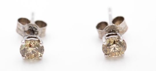 A pair of 14ct white gold single stone diamond stud earrings. The earrings with round brilliant cut diamonds approx 0.90cts estimated total weight. Complete with post backs.  Total weight 0.72g