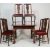 An Edwardian solid mahogany wind out dining table being raised on cabriole legs with pad feet together with a set of Queen Anne mahogany  dining chairs being raised on cabriole legs with stretchers, drop in upholstered seats. Measures 77 H x 98 W x 98 D