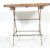 An industrial retro kitchenette / dining trestle table constructed from reclaimed treated pine wood boards for the table top, atop cast metal cross legs. Measures 90 H x 72 W x 95 D
