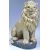 A large retro vintage 20th Century composite model of a heraldic lion. Hand styled features and modelled seated on all four paws raised on an oval ebonised plinth base. A great display piece. Measures: 38cm tall.