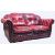 A vintage 20th Century antique style Chesterfield two seater sofa settee in a deep oxblood scarlet red leather having button back cushions and seats with buttoned scrolled arm rests, buttoned apron to lower tier all raised on wooden bun feet. Measures: 72cm x 174cm x 93cm.