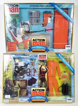 Two Hasbro made Palitoy Action Man ' 40th Anniversary ' uniform / accessory sets - ' Action Man Underwater Explorer Treasure Hunter ' and  ' Jungle Explorer Rivercraft ' set. All unused and as new. Great display pieces.
