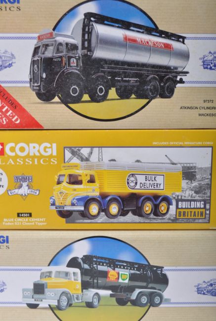 A collection of x10 assorted Corgi made boxed diecast model trucks and lorries to include models from The Brewery Collection, Road Transport and Superhaulers. Examples of Guinness Tanker Lorry, Eddie Stobart Atkinson 8 Wheel Rigid with load, BP Shell Scammel Highwayman Tanker and others. All models appearing mint within original boxes