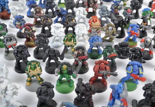 A large collection of 150+ Games Workshop Warhammer 40K wargaming miniature tabletop figures - all Space Marines with various tactical squads, terminators and more. Includes Ultramarines, Blood Angels, Dark Angels, Salamanders, Black Templars, Grey Knights and others. In various conditions, all mostly complete with differing painting standards. Good collection.