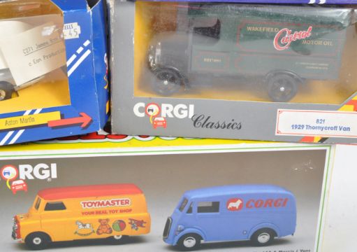 A collection of assorted vintage Corgi made boxed diecast model vehicles to include Corgi Major Toys, Corgi Toymaster, Corgi Wheelz, Corgi Grand Prix Racers, Corgi Mini Special Edition and others. Examples of Aton Martin, 1954 Mercedes, Escort Van, Ford Transit AA and more. All within original boxes